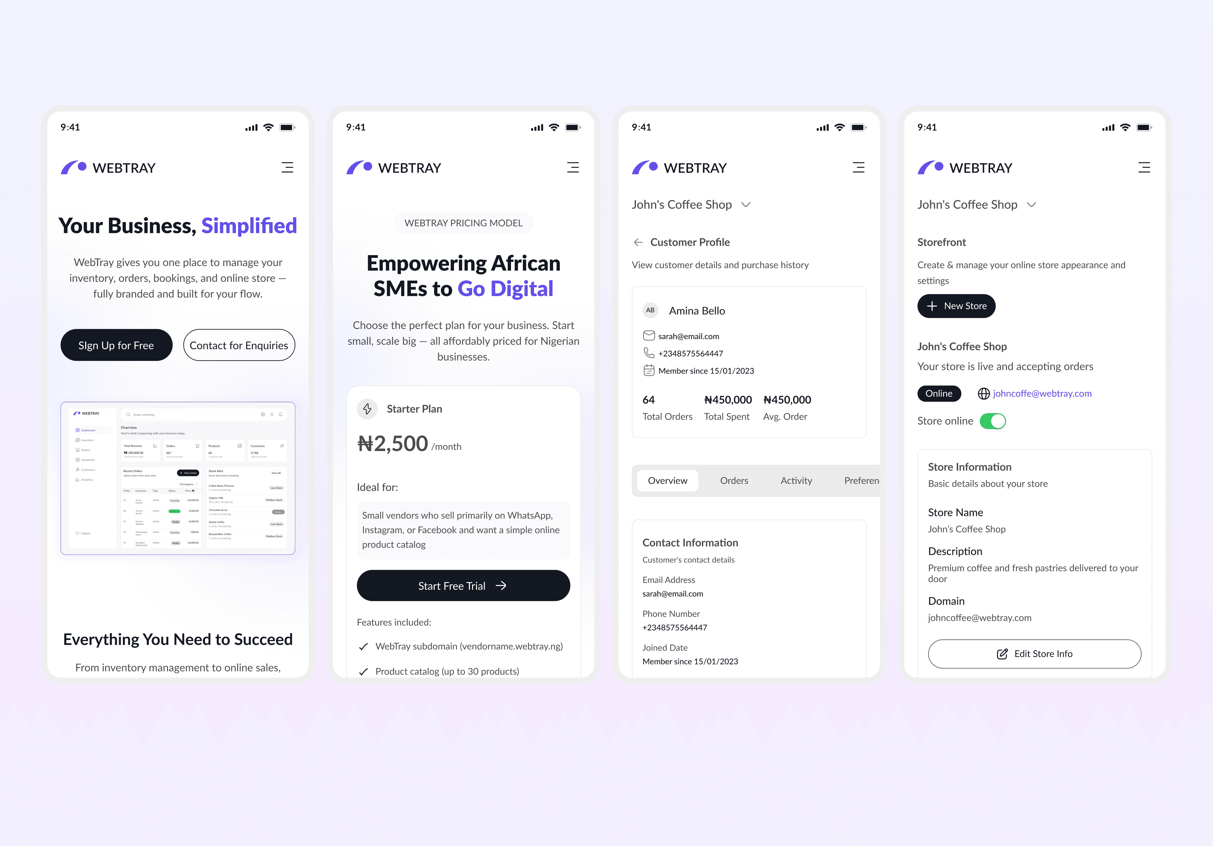 WebTray is an all-in-one platform built to help small businesses manage inventory, orders, bookings, and their own branded storefront from a single dashboard.